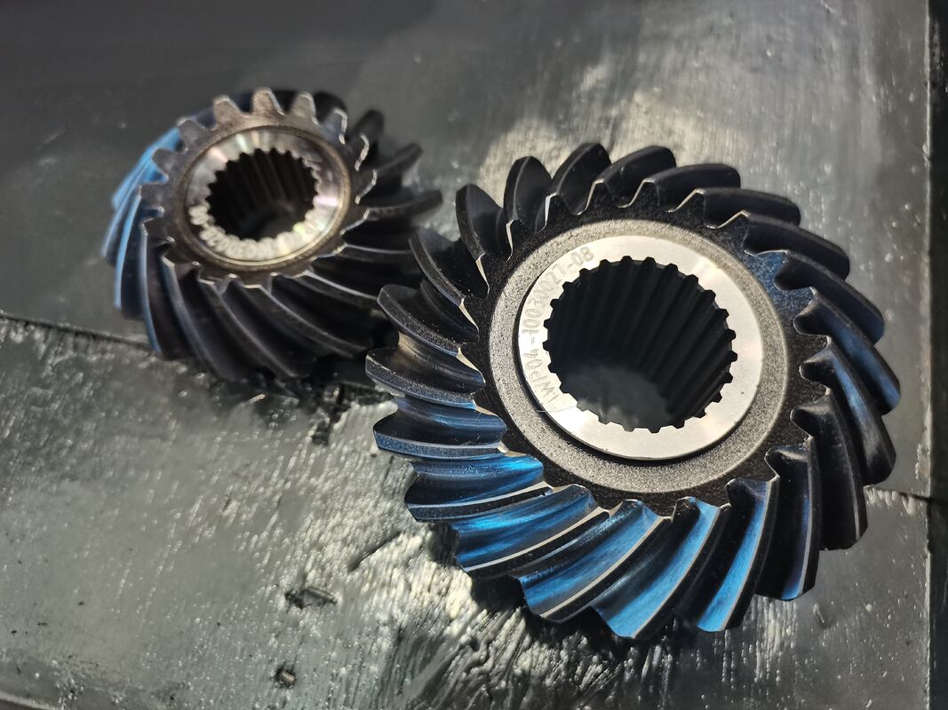 Ontwerp & Geometrie: De spiraalvormige tanden hebben een gebogen profiel dat geleidelijk in elkaar grijpt, waardoor impactbelastingen worden verminderd en operationeel geluid wordt geminimaliseerd. Dit spiraalontwerp maakt ook een hogere draagkracht mogelijk in vergelijking met rechte kegelwielalternatieven.